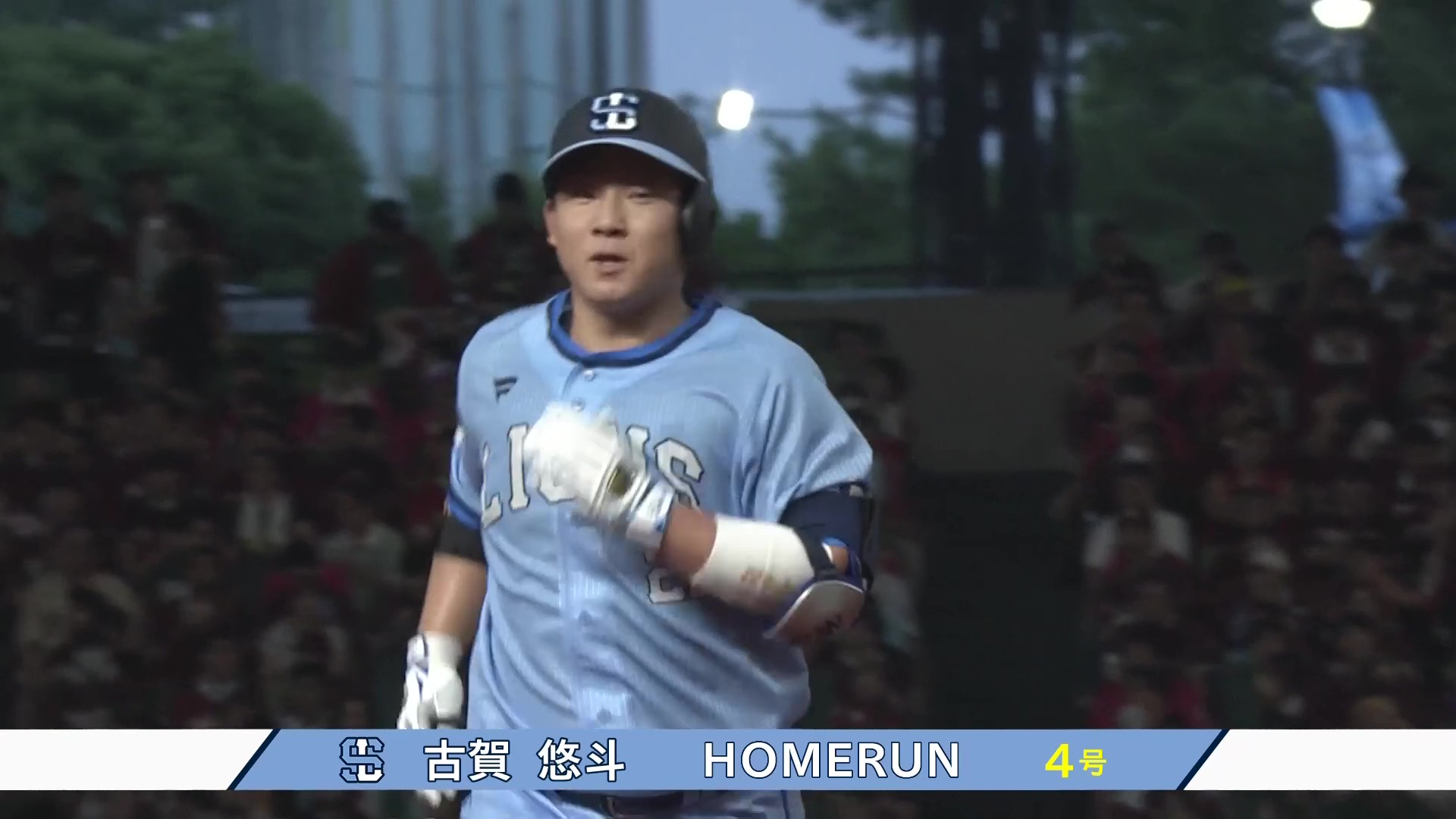 西武 7番 渡部 聖弥 二死一塁 カウント1-2からレフトスタンドへの2ランホームラン 西 4-0 楽 |