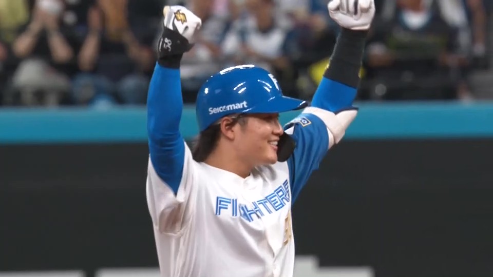 日本ハム 8番 奈良間 大己 一死一二塁 1アウト一二塁からレフトへタイムリーツーベース! 日 5-0 オ 二三塁 |